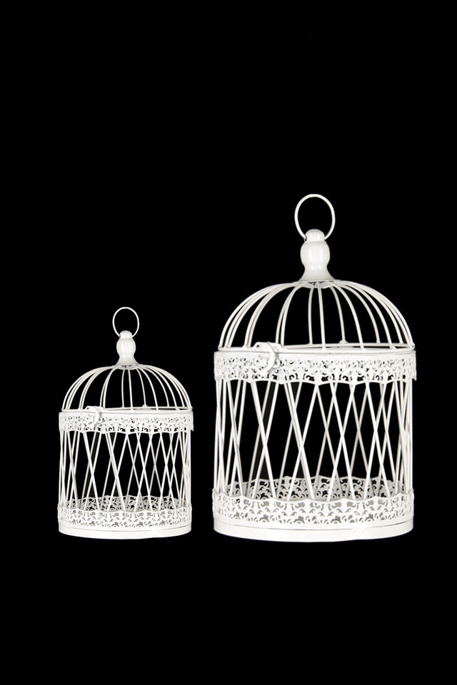 These bird cages come in a set of 2, and look stunning when adorned with strings of fairy lights or floral arrangements. Featuring a hinged dome roof and metal loop for hanging, these make perfect use for wishing wells, hanging décor, table or aisle decorations.